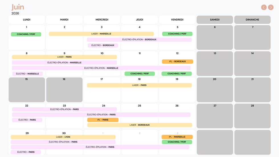 Consultez ci-dessous le calendrier des prochaines sessions de formation de l’École Pyrène. Nos formations en électro-épilation, laser et lumière pulsée (IPL) sont proposées tout au long de l’année dans nos centres de Paris, Marseille, Bordeaux, et sur demandes à Strasbourg et Lyon.